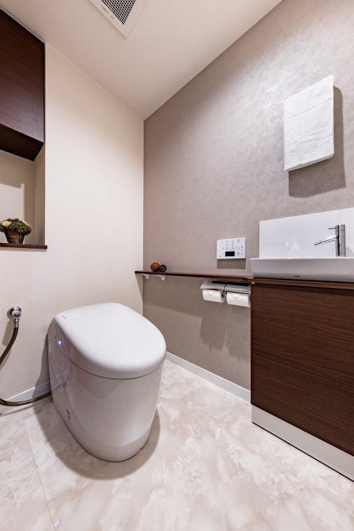 デッドスペースの活用でトイレ空間がひろびろ。壁紙も一新して快適な住まいに。