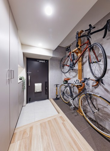 ◆ご主人の趣味である自転車は、搬入やメンテナンスの利便性を考慮し、