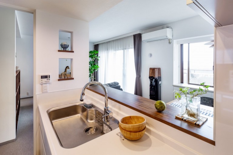 ◆キッチンはL型からI型に変更し、動線をシンプルに。