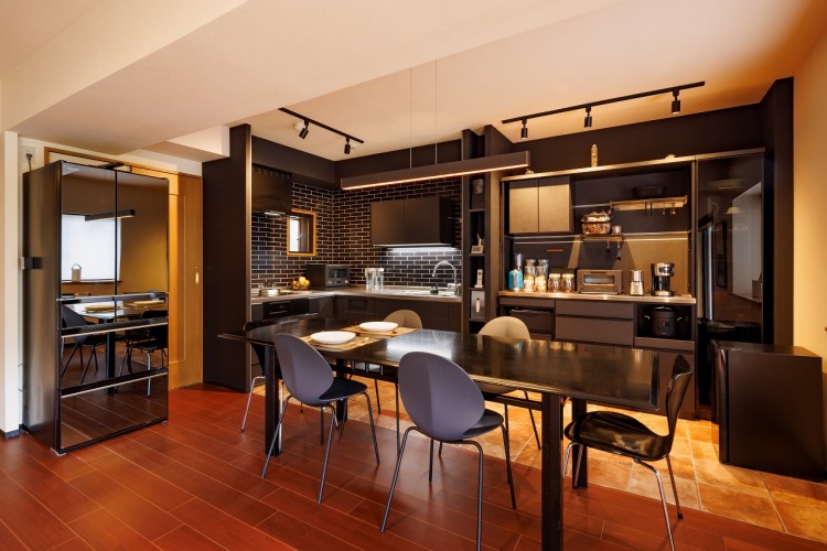 ◆元々ダイニングスペースに置かれていた大きなダイニングテーブルを中心に考え、L型の壁付けキッチンを採用。広々としたダイニング&キッチンになりました。