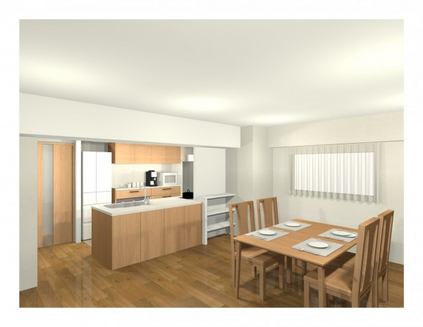 ◆キッチンとリビングを隔てていた壁を撤去し、I型キッチンから対面キッチンに変更しました。